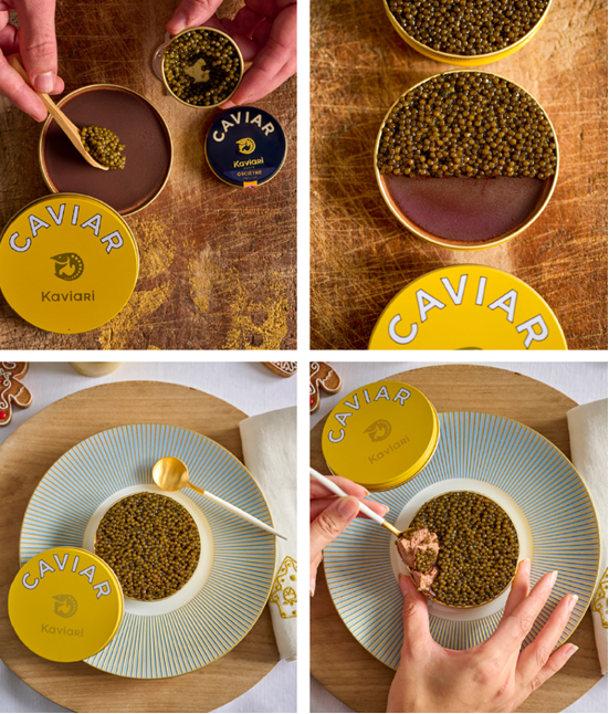 À l’origine de cette rencontre entre terre et mer, une belle histoire de hasard et de passion. Lors d’un voyage à Beaune, Karin Nebot, Directrice Générale de la maison Kaviari, rencontre le chef Alexandre Marza. Ce dernier lui réserve une surprise gourmande en lui proposant une mousse au chocolat au caviar, élaborée avec les produits Kaviari et Valrhona. Séduite par cette alliance inattendue, elle imagine aussitôt de la partager avec tous les clients des boutiques Delikatessen Kaviari. De cette rencontre naît alors une collaboration entre deux chefs passionnés : Alexandre Marza, Chef de cuisine de Romuald Fassenet, et Thierry Bridron, Chef Pâtissier Exécutif de l’École Valrhona Paris. Ce dernier apporte son expertise chocolatée pour sublimer la recette. Ensemble, ils signent une création surprenante où le caviar exalte les notes profondes du chocolat, révélant un équilibre parfait entre douceur, salinité et élégance.